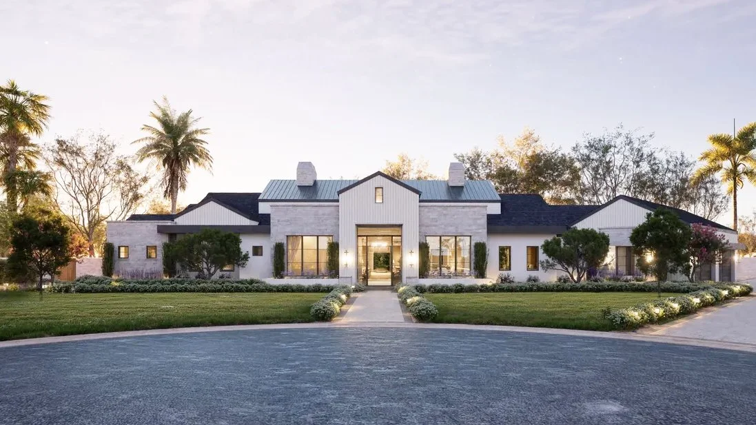 Thoughtfully designed for entertaining and everyday living, the home features a movie room, full bar, sport court, detached casita, and a 4-car garage.